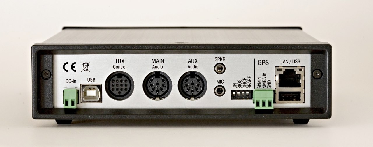 | Connectivity: | User interfaces: USB, Bluetooth (optional), Ethernet (optional), GPS: GPS input (RS232 and TTL) Transceiver audio: 2x transceiver ports (”Main” and ”Aux”, switchable, optional for dual-port operation), symmetrical or unsymmetrical operation can be choosen, with unsymmetrical operation PTC-II compatible connections), Input impedance: 15 kOhm Output impedance: 300 Ohm Output level (open output): 9 Vp-p max., free adjustable Input level: max. 5.5 Vp-p Transceiver control: Over an internal multi-level interface (V24, TTL), compatible with Kenwood, Icom and Yaesu transceivers and many other models Audio: Mic input (high impedance) Speaker output (low impedance, 2 W) |